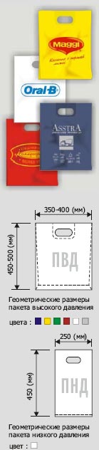 В случае представления заказчиком собственнх пакетов для нанесения изображения, или при заказе ПНД пакетов, цена заказа уменьшается на стоимость тиража типовых пакетов расчитаннои в прайс-листе 0,09( у.е) за 1(шт). Неактивированные пакеты в производство не принимаются.